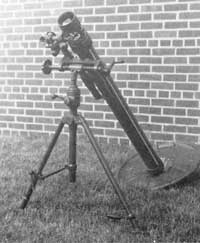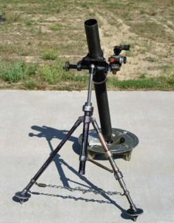 ![]() 4.2": Standard heavy mortar for the U.S. Army. Can be disassembled into three loads (monopod, baseplate, tube) for easier transportation. Individual rounds are dropped down the tube by the loader. Requires 12 combat turns to set up. Wt: 300 kg (monopod 80 kg, baseplate 100 kg, tube 120 kg). Price: $12,000 (C/S).