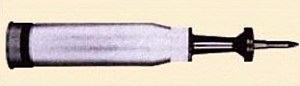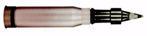 ![]() APFSDS (Armor Piercing Fin Stabilized Discarding Sabot): The round consists of a sub-caliber finned penetrator (usually made of tungsten) surrounded by a full-bore aluminum sabot (pronounced SAY-bo) in several pieces. Once the round leaves the barrel, the sabot falls away. The combination of a large propelling charge and a small diameter penetrator results in very high muzzle velocity and armor penetration.