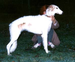 ![]() Dam: Fin Ch Zchatsaj's Angelowa - Sire: Fin Swe Ch Polongain Hubert here pictured at Finnish Borzoi Club's Specialty 1990 Hubert taking BIS and Angelowa BOS |