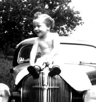Roger Ward sitting on a car.