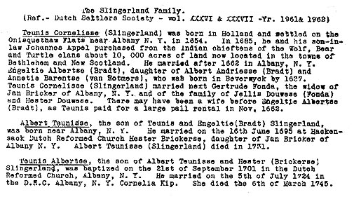 New York Historical Marker #131 is placed at the site of Tunis Cornelise Slingerland’s house. (1650 Dutch Emigrant) (Select Albany County: New Scotland, Town of: Slingerland House 1762)