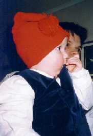 Se! Vi sitter på fanget til julenissen vi!!..meeen, det er litt skummelt! (1998)