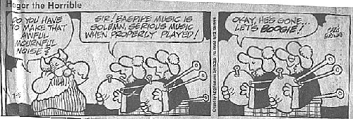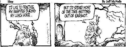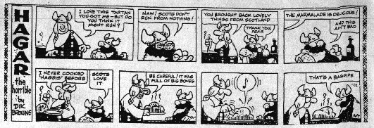 ANCIENT PIPING JOKE: The lads are marching into battle, with the piper playing away like mad.............The enemy's arrows, swords and spears are creating bloody slaughter all through the Irish ranks................Ten men down, and the piper plays on................Twenty men down, and still the pipes ring out.