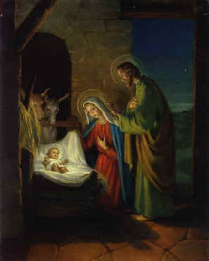 Infant Jesus in the manger. Mary, Joseph and the sheperds adore Him. Let us also adore Christ, the Son of God, in the silence of our soul and from the depth of our heart. Let us ask Mary to make us love Jesus more, and also the gift of poverty of spirit.
