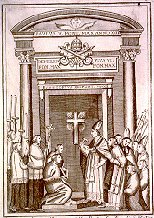 คำจารึกภาษาลาตินอ่านว่า: "จงรับพระจิตเจ้า บาปอะไรก็ตาม ที่ท่านให้อภัย ก็จะได้รับการอภัย . . . "