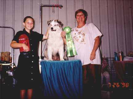 Jaclyn with Tyson after winning Best Junior Handler, Columbia, MO, 1998