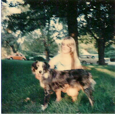 This is Mitzi with her very first Australian Shepherd. She is thankful for all she learned