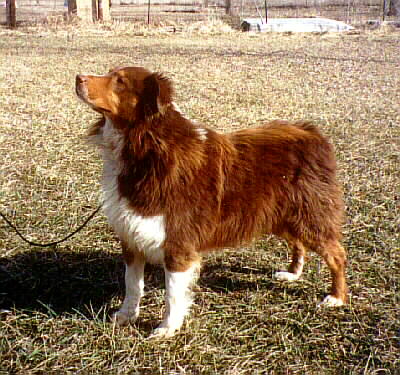 "Sherman" was purchased at the age of 4 years from Ann Caldwell and Julie Scott of AJ kennels. I was thrilled to be able to purchase such a wonderful Red Tri male and sweet dog..and I will always be thankful to Julie and Ann for letting me purchase Sherman. He also died suddenly at a friends house at the young age of 6 years old...and is terribly missed even today. He has made a wonderful contribution to my kennel and has done exactly what I wanted for me...the Cross of Sherman and Tyson offspring has proven to be magic!