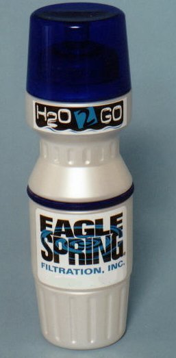 Introducing the newest member of the Eagle Spring Water Treatment family the H2O 2 Go Sport Bottle. H2O 2 Go is a 24 ounce capacity portable water filtration unit for anyone on the go. The filter in H2O 2 Go is 2 micron Absolute Porous-plastic that is impregnated with Powderized Activated Carbon and other Exclusive Absorbing Medias. All materials are FDA Food Grade Approved. This filter removes or reduces: Offensive Tastes & Odors Sediment (Sand, Silt, Dirt) Harmful Microscopic Organisms like Crytosporidium, Giardia, and other cysts and spores. Chemicals and Compounds suck as PCB's, Chlorine, Trihalomethane Agricultural pesticides and many more. Heavy metals suck as lead, mercury and copper. All Materials FDA Food Grade Approved! Replaceable Filter Lasts Up To 200 Gallons... That's Over 1500 Refills! Designed for Travel - Now You and Your Family Can Have Clean, Safe, Delicious Water Anywhere in the World! (Not for use with salt water) Effective and Economical. Easy to use! Environmentally Friendly! More Economical than Bottled Water, the average cost of one bottle of water is $1.00, This unit can save you more than $1500.00 on the same amount of water! The cost of One H2O 2 Go Bottle with filter is $29.95 plus $4.50 shipping. Save and order 2 for the price of $54.95 plus $5.50 shipping. Click Here To Order H2O 2 Go. |