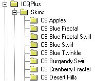| When you give your Skinz a name. I CQ Plus creates a directory with that name under your Skins folder of ICQ Plus. If you don't remember where you installed ICQ, now might be a good time to look for it. Once you have found it look at the sub-folders listed under the Skins . folder. You should find a folder with the same name you just gave your new skin. It is to that folder that you will now want to copy the image or images you want to use for this theme. Once all your files are in place, go back to your ICQ Plus and continue with the creation of your new skinz. |