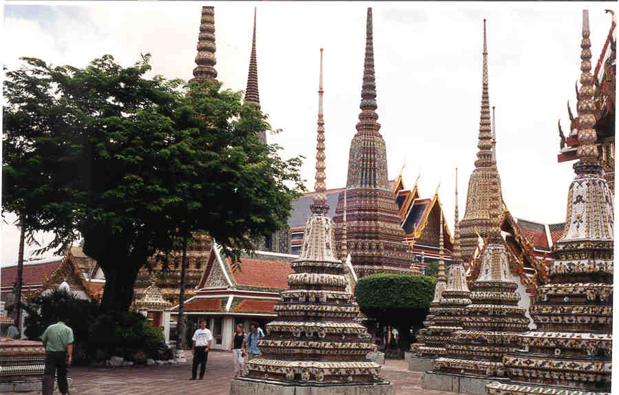 the largest temple in thailand. These temples are all Budhhist, and very elaborately decorated. Inside Wat Pho, there is the famous reclining Buddha, but also many other Bhudda