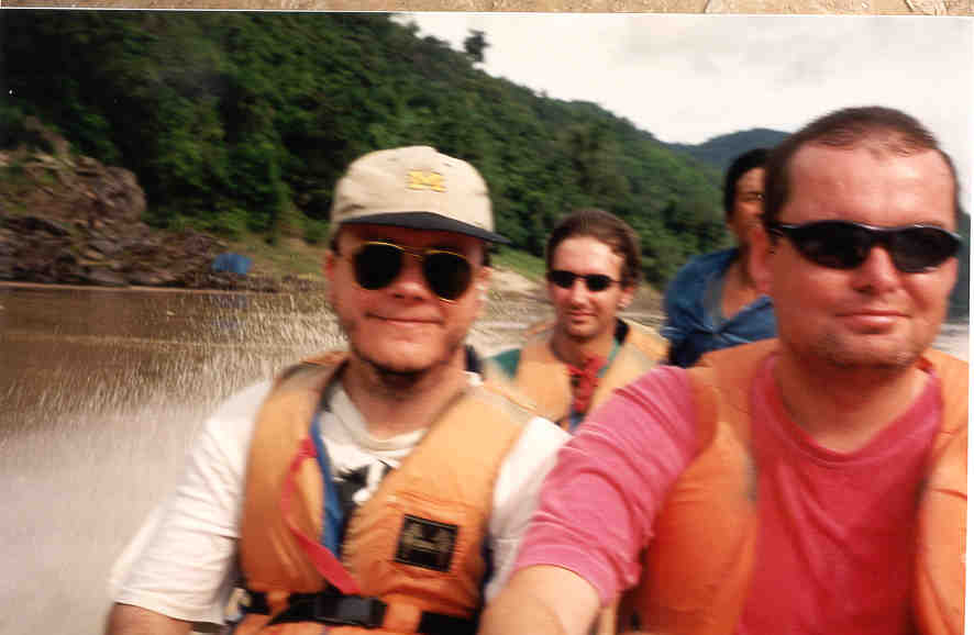 The next day, complete with complimentary head ache, we had a choice of Speed Boat or the same slow boat. The speed boat would go for about one hour and then we would wait for the slow boat and rejoin. 6 of us joined the speed boat, including Mick (right) and Mike (back) our tourguide. The 3 mikes, as opposed to the 3 gorges.