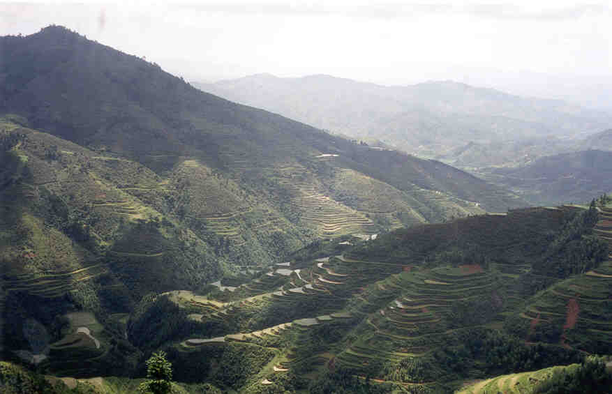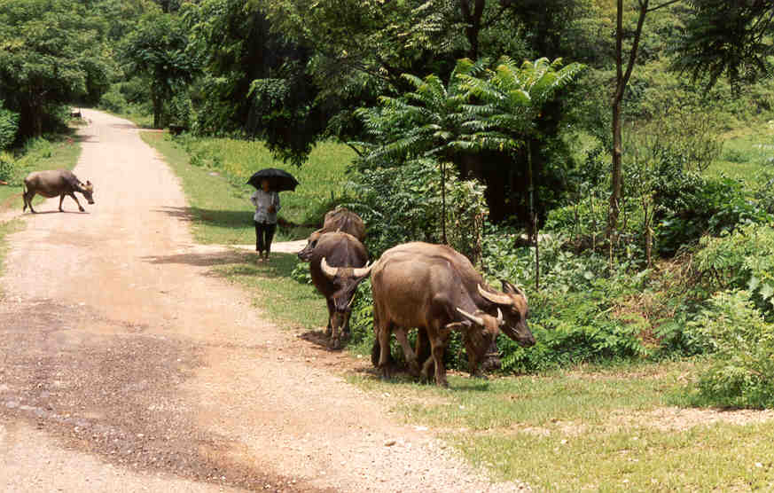 Moon Hill was a pleasant place, and you could climb to the top for spectactular views of the many mountains. After descending the mountain and one last view We took the back way past waterbuffalo and many rice paddies and finally ended up resting in West Street Cafes