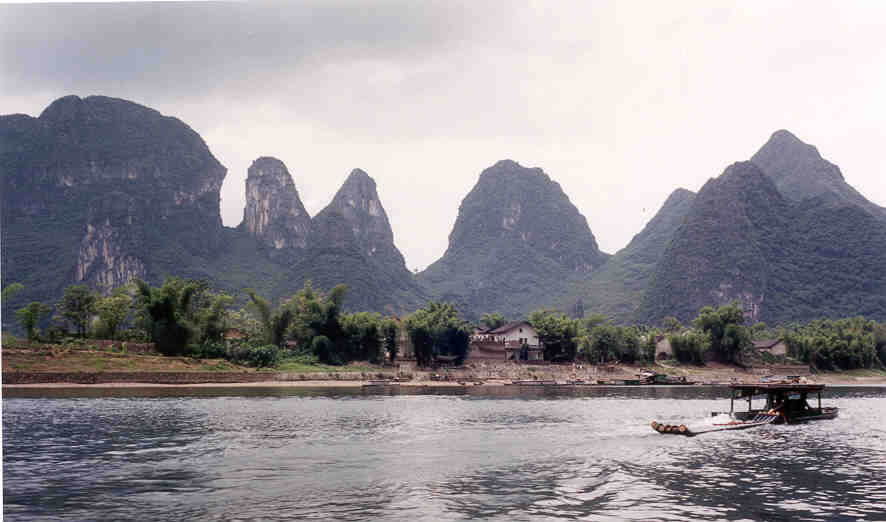 Yangshuo, and Guilin are famous for its Karst Scenery, but unlike Halong Bay, these Karst formations are on land. After a boat ride up the Li river we watched Commoront Fishing. This is where the Large Bird has a stick through its neck, so it can't swallow the fish, and the fisherman can then empty the bird and keep the fish.
