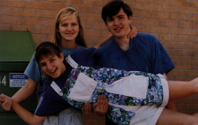 | My older brother, Gerrit, and sister, Charity, were big upper classmen when I got into highschool. Here they are (pretending to) trashcan me! |