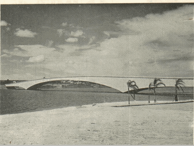 BRASILIA unindo dois continentes de terra firme uma p o n t e de invenção de concreto mas não concreta sobre entre as mar gens estranha via gem sensação de ir realidade instante de estupe fação in tangível a-parentado