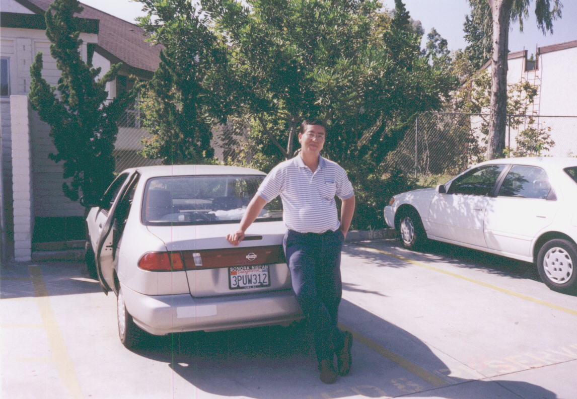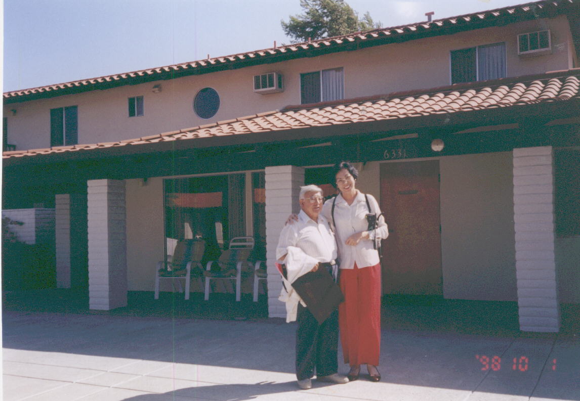 Father Francis and Nancy at the car park outside the Catholic Rancho Mission home in San Diego, California, where he stays as a retired priest.