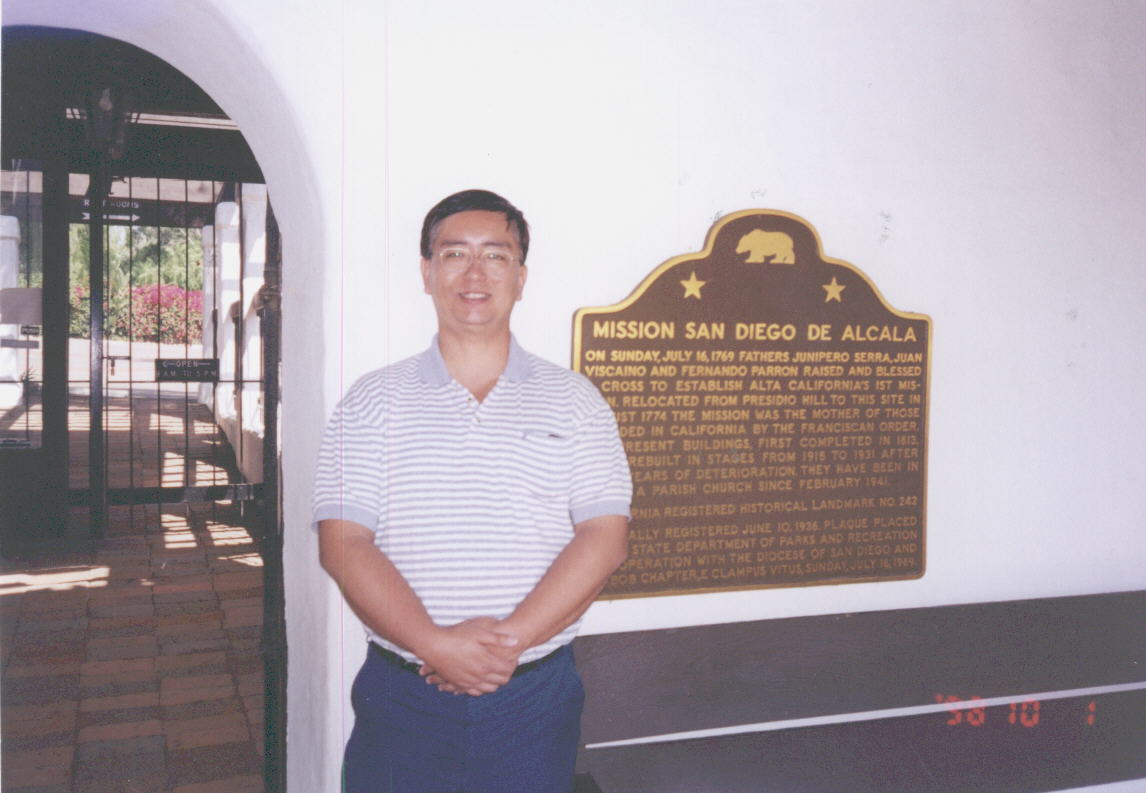 All of us standing the entrance to the Mission Rancho home in San Diego.