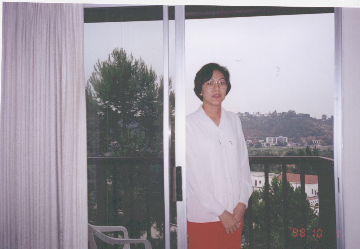 Nancy at the balcony in one of the vacant rooms for priests which the mission superior very kindly allowed us to stay for the night.
