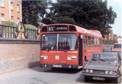 Eastern Counties LN 591 (WAH 591S) is pictured passing through Woodbridge in 1986, heading for Ipswich. At the time this bus was in the care of the out-station at Woodbridge, unusual, as the regular National based here was LN 546.