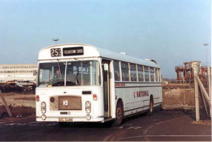 Believed to be part of the last batch of RE's delivered to the National Bus Company, dual purpose RLE 746 (GCL 348N) waits its departure time at Felixstowe Dock before returning to Ipswich in February 1981.