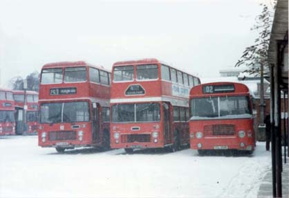 Huddled together for warmth in the Old Cattle Market bus station in Ipswich in January 1981 were Eastern Counties VR 191 (TEX 401R), VR 332 (NAG 587G) and LH 919 (TCL 139R). The middle of the trio, VR 332, came to EC as part of the 1973 Lodekka / VR exchange between NBC and SBG.