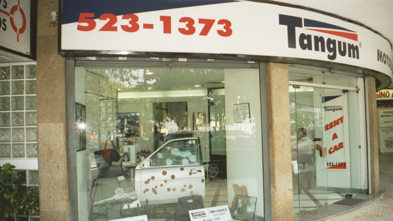 Afterwards I went to a juice bar and passed by the rental car office, where they demonstrate the model favored by businessmen who are often bothered by terrorists and kidnappers; the one that will repel bullets: