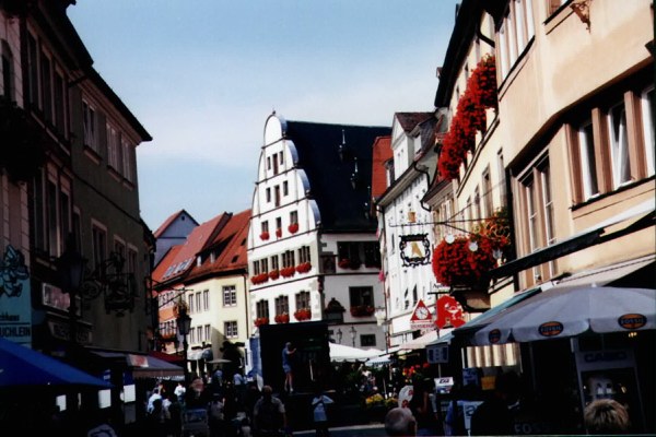 Kitzingen central business district. Window boxes are a tradition all over Germany.