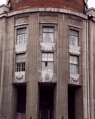 Anyway, back to the unrestored building. Notice the Soviet symbols near the top.
