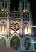 BASILIQUE NOTRE DAME. Av. Jean Médecin. 1864-18683 La plus grande église de Nice est le premier édifice religieux moderne construit au cœur de la ville nouvelle après le rattachement à la France (l'architecte C. Lenormand). Les bas-côtés qui flanquent la nef sont prolongés par un déambulatoire à chapelles rayonnantes. Vitraux fin XIXe par C. Champigneulle.
