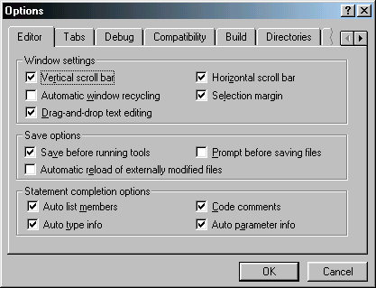 To do this, load up Visual C++, then goto TOOLS, then OPTIONS then a window will appear (See figure one)