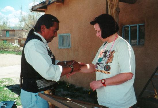 Wings putting on a beautiful bracelet I just bought from him Taos Pueblo, NM |