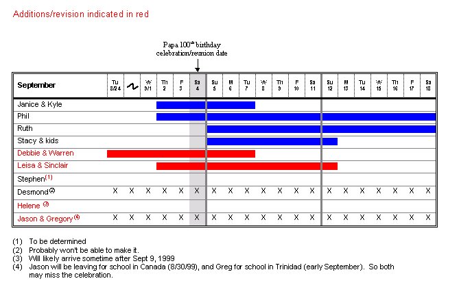 We are getting together for an extended family reunion from September 2nd through September 18th (or so) to celebrate Papa's 100th birthday on September 16th. There is a full
