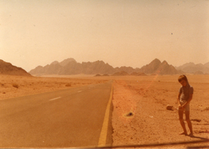 | This was on our way back from the Sinai desert, I pretended to be a Bedouin poor man begging for a ride. |