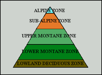 Higher up are the Spruce dominated Forests of the Upper Montane Zone.