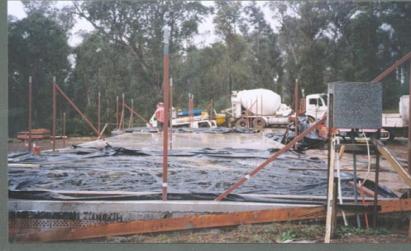 protected from the elements while walls are being built. Also there is no problem of shrinkage away