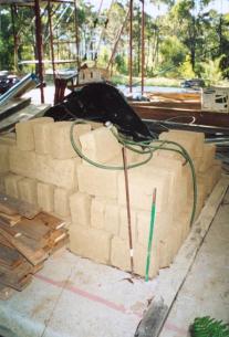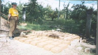 Mudbricks drying. In summer they were kept under cover to prevent them drying too quickly and cracking.