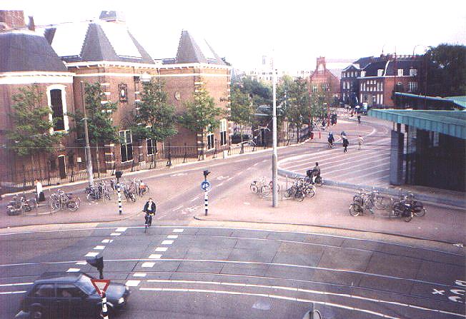 在鑽石店二樓,放眼向窗外望去, 梵古博物館就在對街,街上電車、公車來來往往,但為數最多的還是自行車.單車騎士滿街跑,但一點也沒有中國街景的感覺,因為他們外表清潔,衣著整齊,只有簡單的行李.自行車是荷蘭人最常使用的交通工具,也是失竊率很高的交通工具.放眼望去,皆可見穿著長風衣,