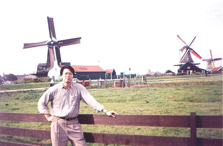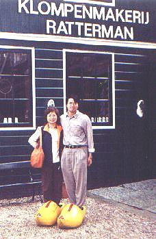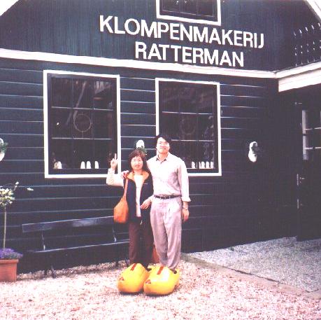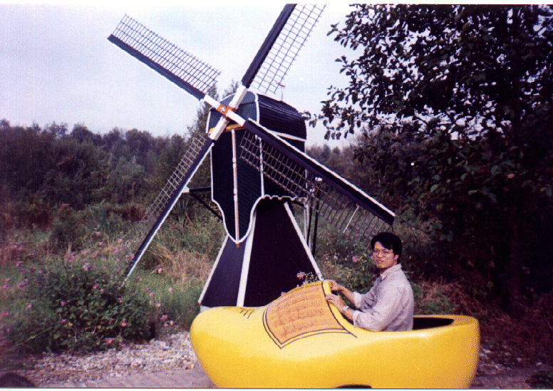 下了高速公路,首先來到的是荷蘭名產──木鞋──的木屐工廠.我們都很高興,一下車,就有大木鞋和小風車擺在一起,人人都與之合影,馬上搖身一變,沉醉在國家特色的景物裡.