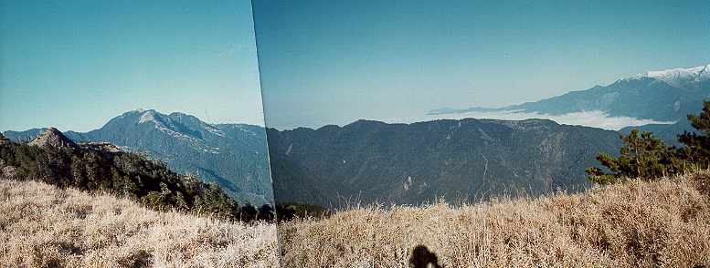 走過柔和豐潤的武崚農場之後,雲海開始在腳下飄浮。在哭坡頂端,沒有挺拔的樹木妨礙視野,俯視山下,頓覺山崚線一逕是狂野、崎嶇而暴烈的。內部地帶茂密長著松柏和檜木,地面充滿濃密的灌木叢。即使是今日,原始的雪山也不難想像,的確,這片廣大的山川在千百年前想必不折不扣正是這幅風貌。 |