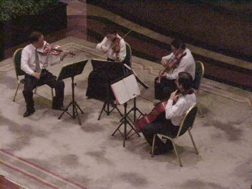Not a sunset view, but they were playing at sunset, in our hotel lobby.