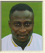 This is Tony Yeboah - a PHENOMENAL footballer. I'm not sure whether the Queen has knighted him but she should have. He never played for Huddersfield, but he scored the greatest goal in the history of sport. He was playing for Leeds against Wimbledon and as I remember it, the ball fell to him on the half way line, he TRAPPED the ball on his THIGH, knocked it forward with the other thigh and then VOLLEYED the ball so hard, Patrick Moore (astrologer) thought Halleys Comet had re-entered the atmosphere and landed in Elland Road. It was an incredibly emotional moment for everyone, especially Tony. Sadly, after this goal, everyone kept talking about his knob and how long it was calling him "Yeboahconstrictor", "Monty Python", and "Dodge Viper". Tony now lives in Germany where he's also a film star.