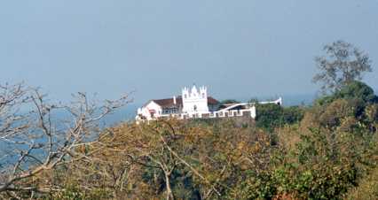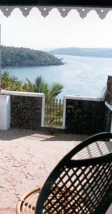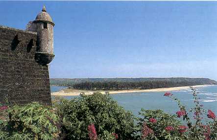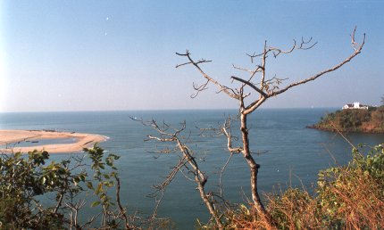 > At the left the beach. At the right the Tiracol Fort. You can cross the river with the hotel's boat and observe rare birds.
