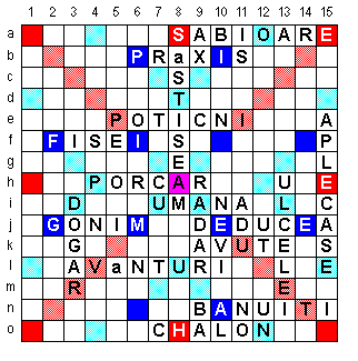 pentru fiecare: poziția, CUVÎNTUL, punctajul).