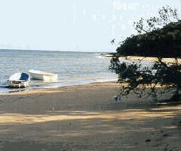 Inhaca Island is situated in the Bay of Maputo and is a 45 minute boat ride from the capital by speedboat. You get the boat at the harbour or Porto Once you have reached the harbour and you set about procuring local currency. Banks to exchange currency are available except on Saturday and Sunday. Street vendors are always willing but not always honest and exchanging with them should be a last resort. Rands and Dollars will be accepted for most purchases and fares but the exchange rate cannot be guaranteed and it tends to be difficult to negotiate in Portuguese . Once a willing interpreter has found you, negotiations for a boat can commence. In the time before you actually sail, it is possible to buy curios, eat LM prawns at a price that can't be beaten anywhere else and savour the potent local beer (cerveja) which is excellent value for money and comes in decent 550 ml bottles. At last, the pre-determined time arrives and with a sudden flourish of activity everyone starts heading towards the right boat, The skyline of Maputo takes forever to disappear Soon enough a landmass becomes apparent and with an appreciable sigh of relief you realize that trip is now almost over. |