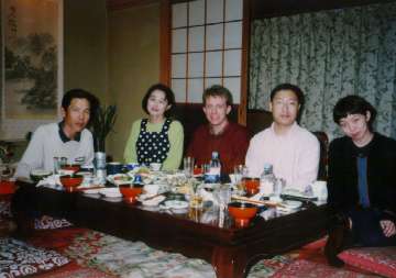 After we have cooled down a bit, we went out for dinner. As a side effect of our earlier disorientation, we had already located some reasonable restaurants. We chose a Chinese restaurant, and it wasnt too difficult for me to read the menu, because many items were written in kanji the set of Japanese characters borrowed from Chinese. Of course, I couldnt pronounce them in Japanese, so Matts studying came to the rescue. He was able to order by saying "please give me this and that"! Not particularly elegant, but it worked.