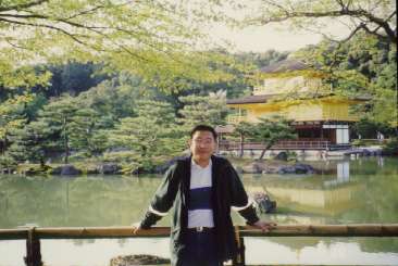Our final stop of the day was Kinkaku-ji (Temple of the Golden Pavilion). Like its Ginkaku counterpart, it started out as a villa. When Yoshimitsu died, it was made into a Zen temple. Unlike its Ginkaku counterpart, the second and third floors of the building really were covered with gold-leaf. Of course, the gold-leaf we saw wasnt original. It had been extensively repaired in 1987, and the present gold-leaf was five times thicker than the original. Together with the mirror pond, they made a wonderful scene, and we took quite a lot of pictures as a result.