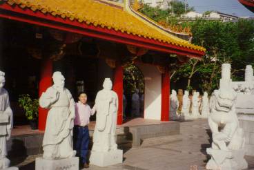 Me, with two of the Confucius Wise Men's statues