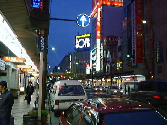 By the time we were finished at Osaka Castle, it was already getting dark. We decided that it was time to do some shopping. We took the subway to Nippombashi station, from where we walked to Den Den Town - the place to buy the electronics goods, cheaply, in Japan. Matt had earlier decided to buy a personal CD player and we walked around to look at the models and prices. Eventually, he decided to buy a Sony model with a 20 second "ESP-2". Matt was careful to find a shop that offered a duty-free service, so that he wouldn't need to pay the 5% sales tax. Tei had earlier advised Matt that he needed to haggle in these shops. Being an unaccomplished haggler, Matt asked me to come over to offer moral support and "haggling backup". Matt was very happy to buy his new toy at one-third of its price in England!
