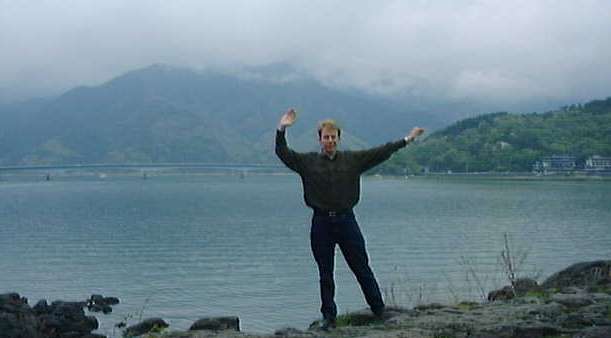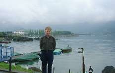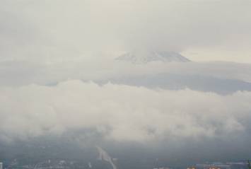 Our boat came in the shape of a dolphin (or was it a whale). This boat cruise was a terrific way to go around the lake, and we had some fun time trying to take pictures of each other. On the boat we decided that we would not go to the Fifth Step (the highest point in Mount Fuji you could go to by public transport). It was only a drop-off point for people who wanted to climb the mountain, and it would be of no great interest if we only wanted to see Mount Fuji as scenery. I managed to persuade Matt that we should spend our newly-acquired extra time going to the Fujikyu Highland park, which was famous for its Fujiyama roller coaster. Our guidebooks were being right about Mount Fuji being elusive. From our boat, we almost couldn't locate the mountain - it was almost completely obscured by the clouds.